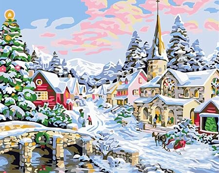 Pintura DIY por números para niños adultos, abeUTY Navidad nieve escena 16 x 20 pulgadas número pintura arte terapia: Amazon.es: Hogar